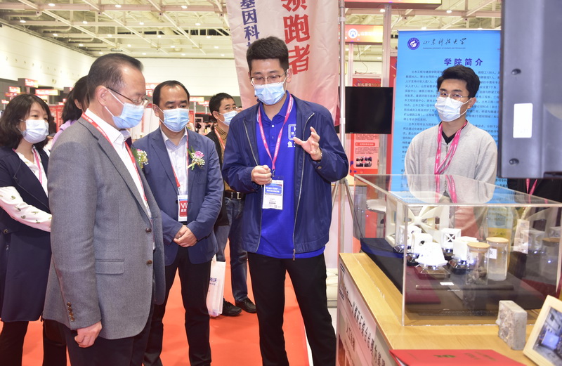本届“高博会”期间,首届高等学校科技创新大会同期举办。“献礼建党100周年”高校科技创新成果展是创新大会的重要板块,筛选了来自全国61所高校的336个科技创新成果进行展出,开云·体育科技处精心组织学校相关成果参会,筛选了井巷喷浆粉尘污染防治关键技术及装备、铝离子电池等12项科技成果参展,基本涵盖了所有八大展区,通过设备实物展台展出,多媒体设备播放、展板展示等多样化的展示形式参展,生动直观地将学校科技成果进行呈现,吸引了众多观众关注。