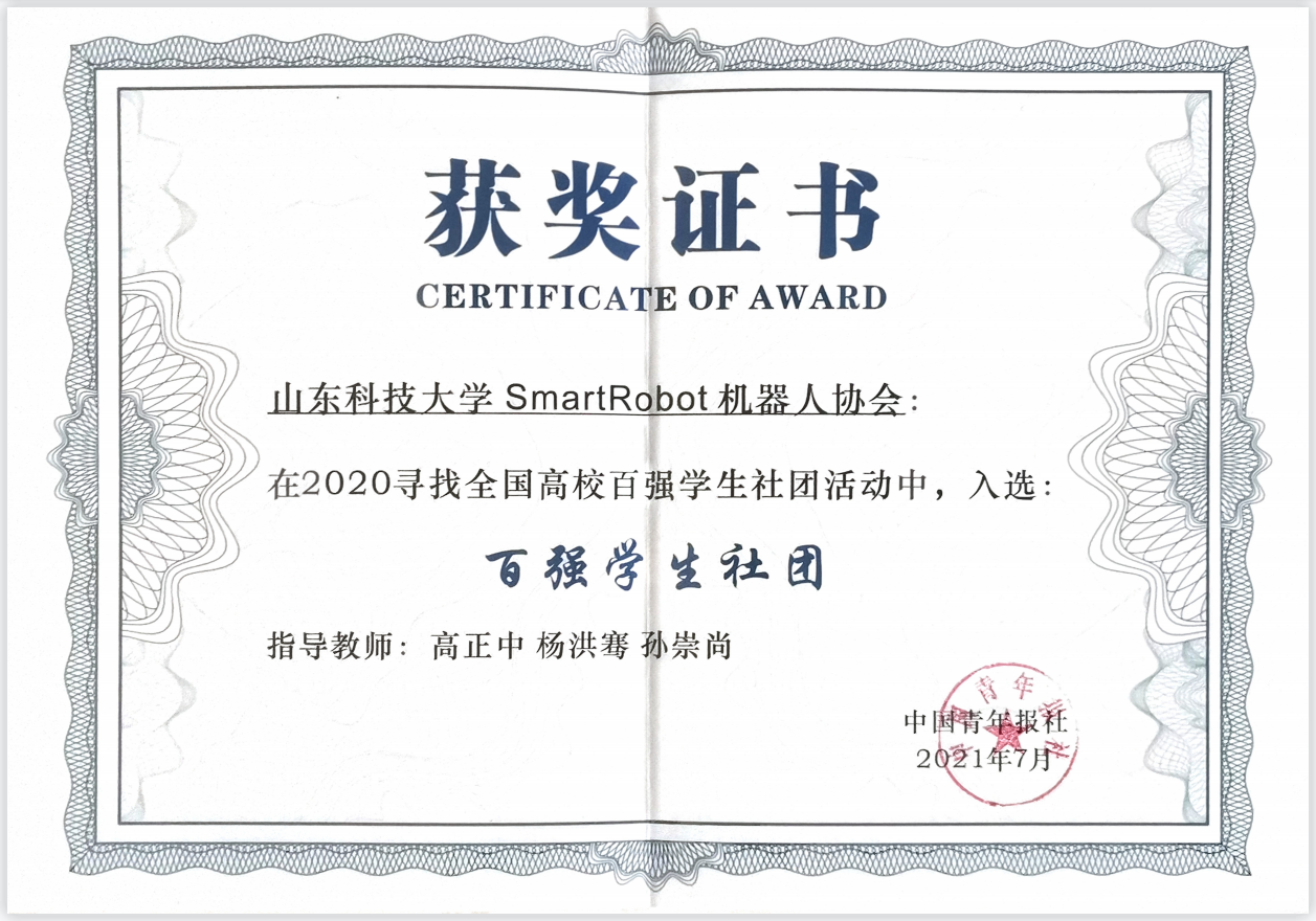 近日,由全国学联秘书处指导、中国青年报社主办的“2020寻找全国高校百强学生社团”活动评选结果揭晓,开云·体育SmartRobot机器人协会经过学校推荐、社团展示、网络投票、技术筛查、专家评审等环节,从来自全国各地1014所高校的3871个学生社团中脱颖而出,入选“2020年全国高校百强学生社团”。