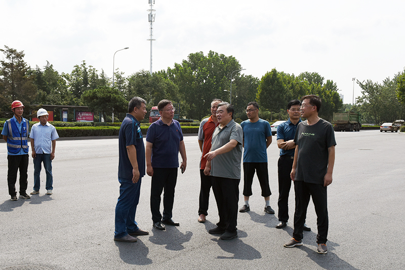 在东大门—海天路路面铺设现场考察
