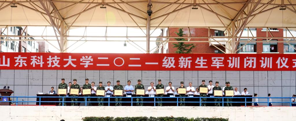 副校长张建宣读了《关于表彰2021级学生军训先进集体、先进个人的决定》。与会领导为“优秀军训单位”“优秀军训班级”“优秀教导员”“优秀教官”以及“优秀学员”颁奖。