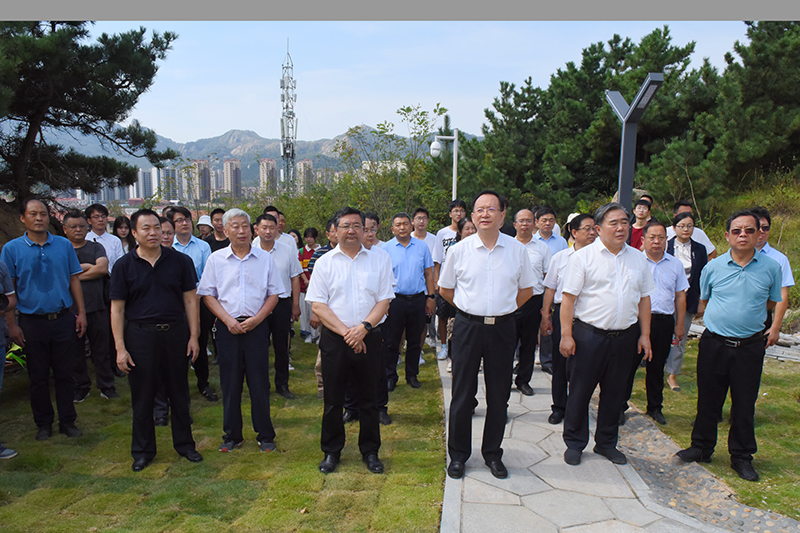 乾惕亭落成仪式前,还举行了笔架山登山步道剪彩仪式,罗公利、姚庆国、尹华、张云生、王友清、薛林旭、曹正为笔架山登山步道通行剪彩。