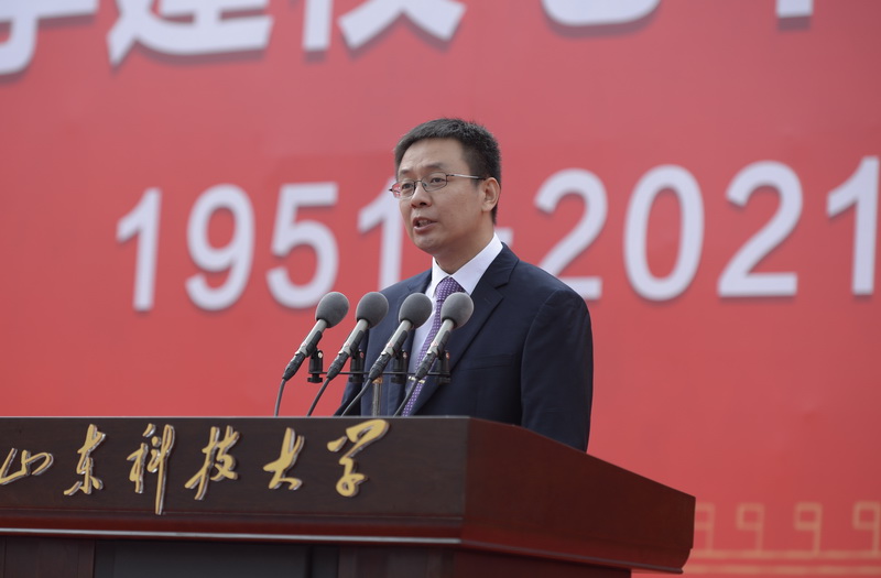 学生代表、山东省学联执行主席王家轩发言,表示,作为新时代科大学子,一定不负青春、珍惜韶华,秉承“惟真求新”的校训和“坚韧不拔、发奋图强”的科大精神,将小我融入大我,把青春献给祖国,用实际行动让开云·体育这个灿烂的名字更具魅力、更具光彩。