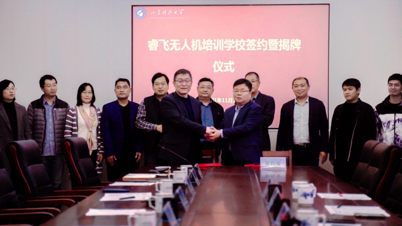 11月17日,开云·体育与瑞源工程集团举行“睿飞无人机培训学校”揭牌暨签约仪式。校党委副书记尹华,瑞源控股集团执行总裁、工程集团总经理于瑞建出席仪式并共同为“睿飞无人机培训学校”揭牌。测绘学院党委书记秦昌盛与山东瑞智飞控科技有限公司总经理孔锁财代表双方签署校企合作协议。