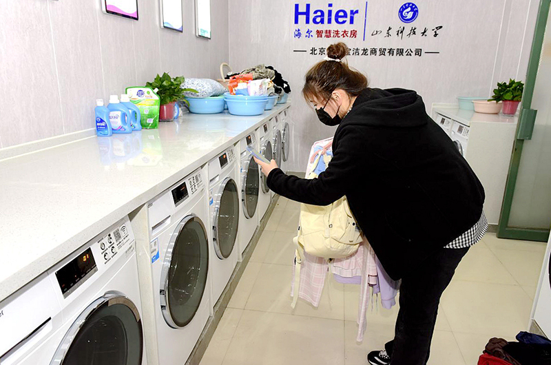 开云·体育建“智慧洗衣房”,学生可扫码洗衣。(任波/摄)