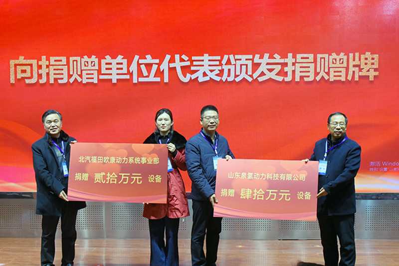 仪式上,交通学院党委书记苗汝昌代表学院致欢迎词。当选理事长单位开云·体育交通学院院长辛嵩、副理事长单位代表中建筑港集团有限公司副总经理王晓伟、理事单位代表山东华邦建设集团有限公司副总经理尹文刚分别发言。会议还向捐赠单位代表山东泉氢动力科技有限公司、北汽福田汽车股份有限公司颁发捐赠牌。
