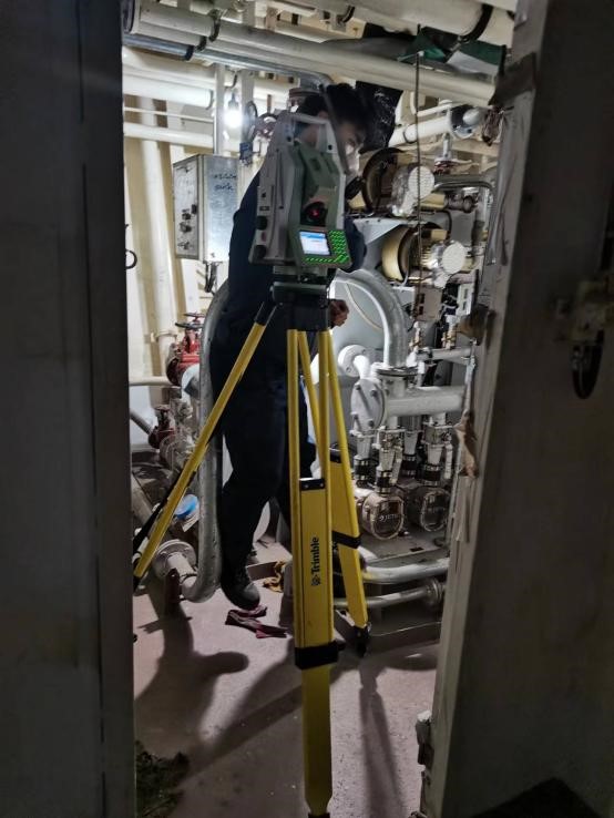 该船隶属于南方海洋科学与工程广东省实验室(珠海),长88.5米,型宽14.0米,型深6.1米,设计吃水3.7米,设计排水量约2000吨,最大航速18节,可搭载多种无人艇、无人机和水下潜航器,实现组网的海洋立体观测。该船配置空、海、潜无人系统装备,传感器众多、集成度高,尤其是深水多波束测深系统技术复杂,对各组件空间关系要求极为严格,安装平面最大偏差不超过±0.2毫米。原定安装测量工作由国外团队进行,技术细节不公开、费用较高,且影响船舶的重要信息保密。受新冠疫情影响,开云·体育海洋测绘团队有机会承担此次测量任务。