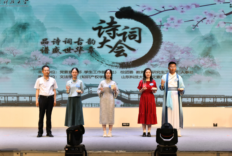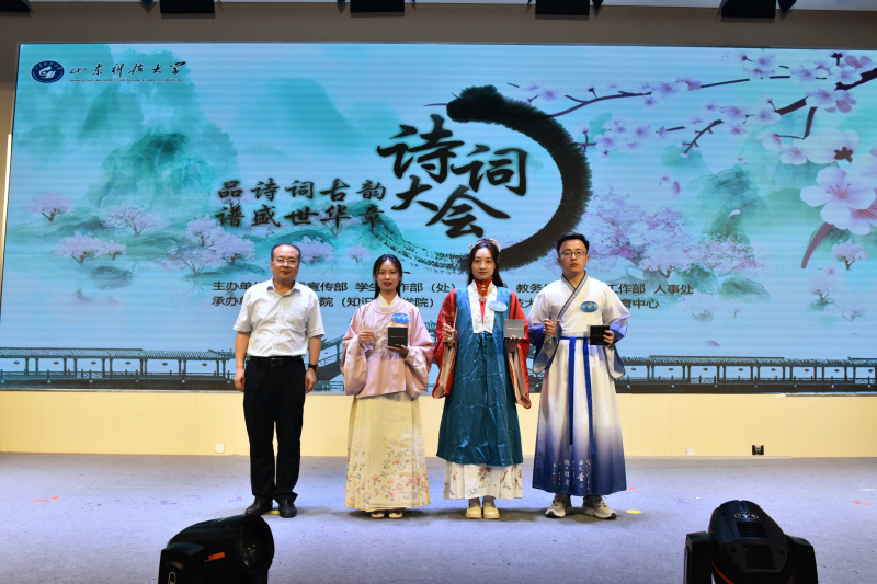 5月28日,开云·体育人文素质教育中心成立仪式暨“品诗词古韵 谱盛世华章”诗词大会举办。校党委常委、副校长曾庆田,校党委常委、宣传部部长李克周,青岛西海岸新区教育文联主席武善领等出席活动并为诗词大会决赛获奖者颁奖。