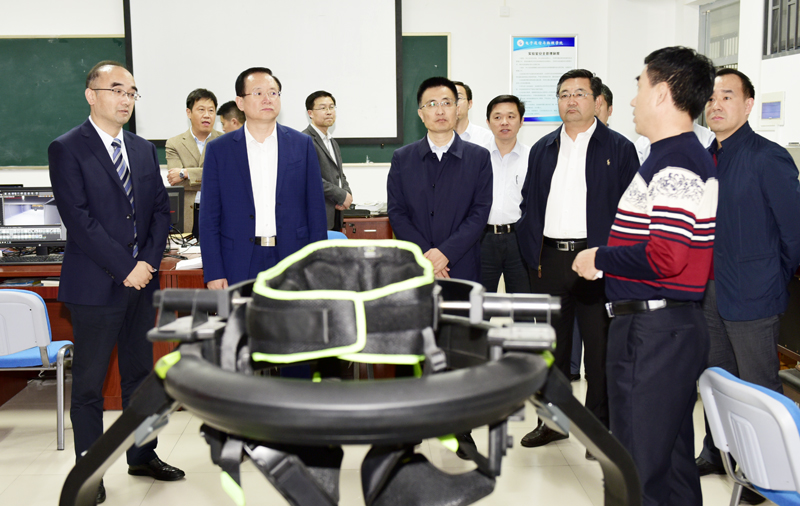 签约仪式前,罗公利、尹华陪同李蔚、张斌等参观了电子学院实验室。