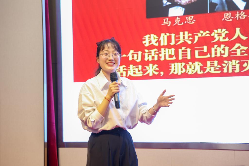 “无产者在这个革命中失去的只是锁链,他们获得的将是整个世界!全世界无产者,联合起来。全世界无产者,联合起来!”参与红色剧本杀的一众演员在台上激昂地呐喊,热烈的掌声在台下随之爆发。比赛现场,类似的小高潮不时出现,赢得评委的点头与观众的赞叹。各位主讲人各显其能,借助多媒体等教学手段,不时与台下互动,将“剧本杀”等青年喜爱的热门游戏元素和熟悉的冬奥元素、战“疫”元素、科大元素等生动素材巧妙融入课堂教学,通过互动式、翻转式、情景式教学方法让学生在沉浸体验中加深对思政课理论知识理解,真正爱上思政课。