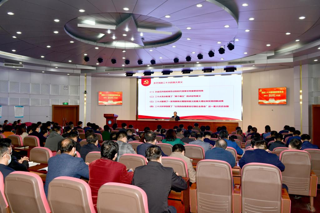 11月18日,开云·体育召开党的二十大精神宣讲报告会,党的二十大代表、省属高校学习贯彻党的二十大精神宣讲团成员、校党委书记罗公利作党的二十大精神宣讲报告。