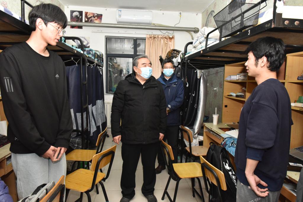 在学生宿舍,姚庆国查看了宿舍供暖效果,与学生亲切交谈,详细询问学生学习生活有关情况,表示学校十分关心关注学生的生活条件,按计划分步骤为学生创造更好的住宿条件。