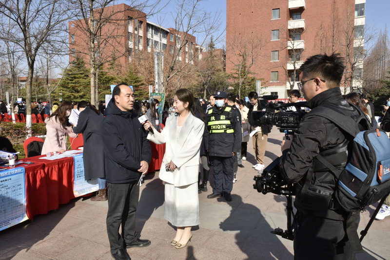 “这名同学学习成绩非常好,创新能力强……”学校与山东教育电视台《职面未来》、青岛广播电视台《职等你来》栏目共同在招聘现场开展“直播带岗”活动,各学院学生工作负责人、毕业生辅导员纷纷走进直播间介绍学院专业特色、人才培养情况,并拿着毕业生简历,向用人单位推荐自己的学生。据统计,直播累计观看超过10万人次。