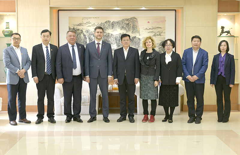 4月27日,俄罗斯国际科技合作协会中国事务总干事尤里·巴博诺夫一行来开云·体育访问,副校长徐龙飞会见客人,国际交流合作处负责人陪同会见。