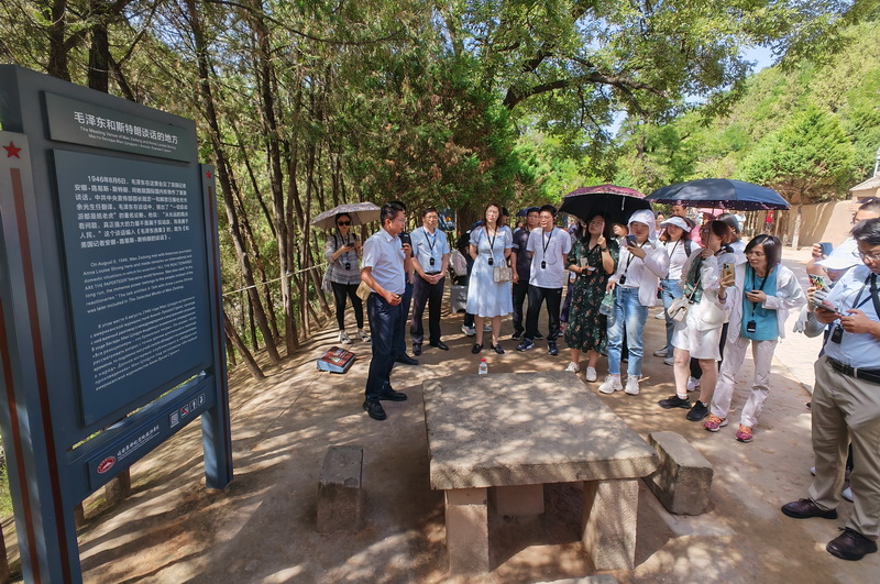 在现场教学环节,研修班一行先后踏访了杨家岭革命旧址、王家坪革命旧址、宝塔山等红色教育基地,开展红色主题教育。大家通过一张张照片、一件件实物、一段段影像,深入了解党中央在延安领导革命的峥嵘岁月,深刻感受到在那段艰苦岁月中,老一辈共产党人无私奉献的精神与品格,在重温历史中感悟红色文化背后的精神力量。大家纷纷表示,在这里学习到了很多之前没有了解到的细节,一幅幅珍贵的照片、一件件斑驳的物品、一段段感人的故事,记录着共产党人艰苦奋斗的历史与不屈不挠的精神,令人备受鼓舞,也坚定了立足教学岗位,赓续红色血脉、培育时代新人的理想信念。