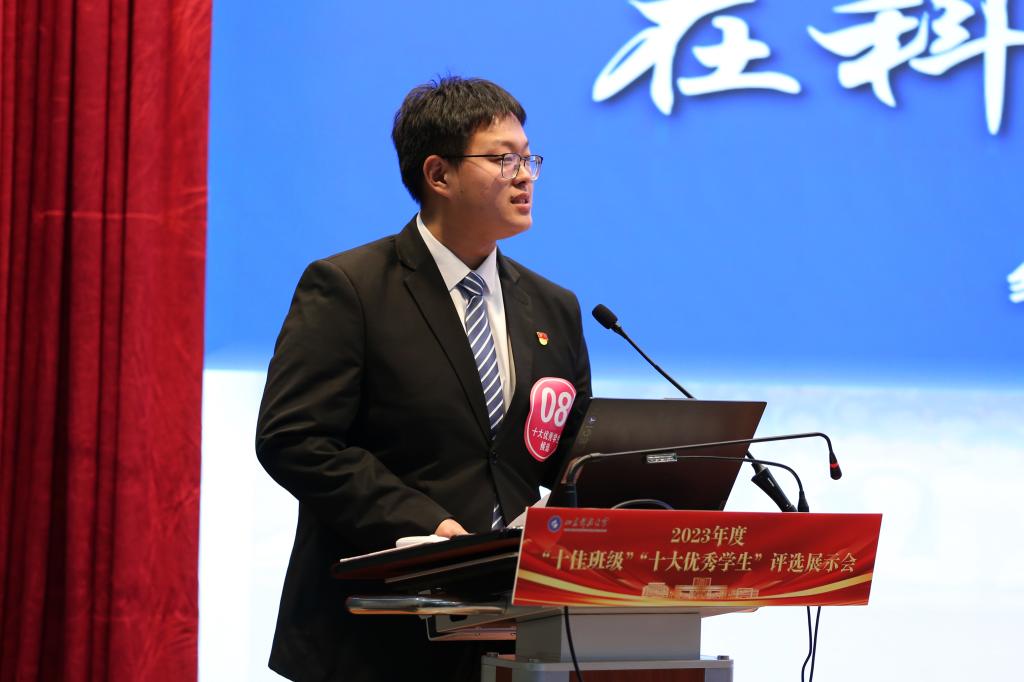 “十佳班级”的评选分为代表展示和集体展示两个环节,18个候选班级围绕班风建设、学风建设、制度建设、文化建设、班级特色等方面展示班级情况、取得的成绩及班级建设的经验。“十大优秀学生”的评选分为自我展示和抽题问答两个环节。17名候选人从专业学习、学术研究、科技创新、社会实践、志愿服务、文体艺术等方面介绍个人的基本情况、取得的成绩以及学习工作感悟。