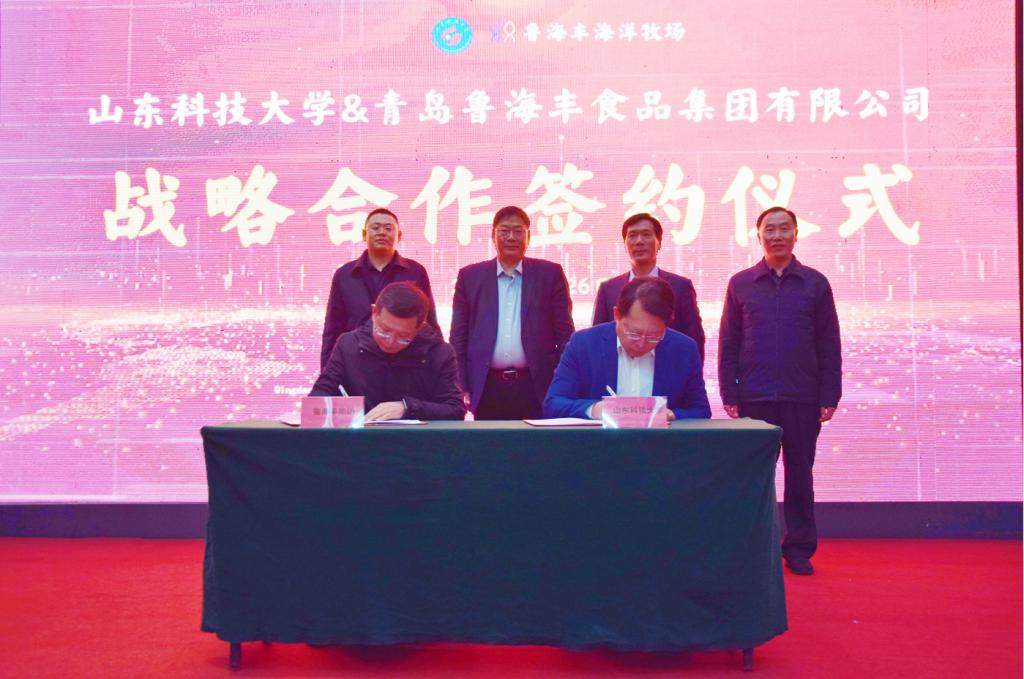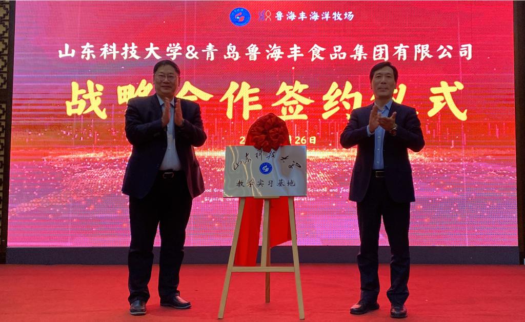 1月26日,开云·体育与青岛鲁海丰食品集团有限公司(下称“集团”)签订战略合作协议。开云·体育副校长诸葛福民、青岛西海岸新区副区长赵英民代表双方为“开云·体育教学实习基地”揭牌,海洋学院执行院长杜立彬与集团副总经理薛波代表双方签订战略合作协议。集团总经理刘润泽主持签约揭牌仪式。