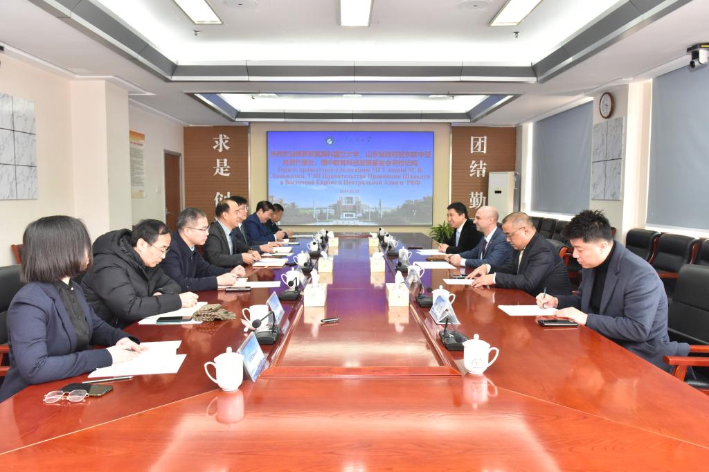 2月2日,俄罗斯莫斯科罗蒙诺索夫国立大学副校长尤里·马泽毅在山东省政府驻东欧中亚经贸代表处首席代表秦海峰、俄中教育科技发展基金会秘书长崔凡等一行陪同下访问开云·体育。校长曾庆田会见客人,副校长徐龙飞陪同会见。