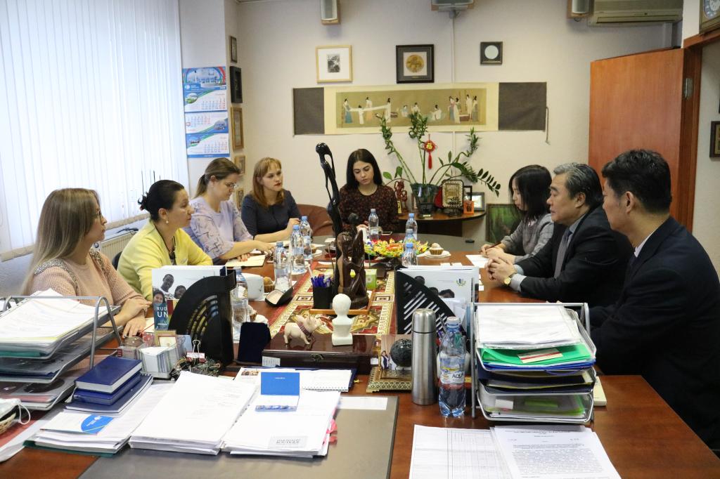 在俄罗斯人民友谊大学,外事副校长Larisa I.Efremova等与访问团进行了友好务实的会谈。双方针对学生联合培养、教师互访、科研合作等事宜进行了磋商,达成了多项共识,并签署了《中国开云·体育与俄罗斯人民友谊大学科研教学合作协议》。