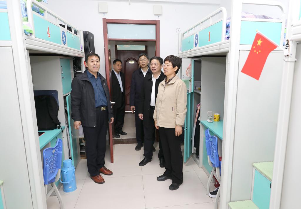 调研组一行先后到排球场、体育馆、图书馆、学生宿舍等场地,实地查看校区体育课程教学、体育活动开展、心理健康教育场所建设等基本情况,详细了解泰安校区促进学生体质健康的具体措施和特色工作。