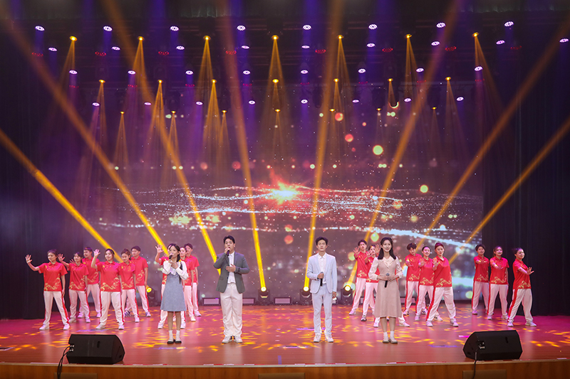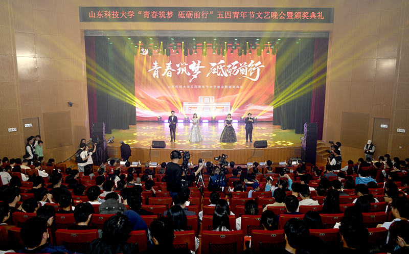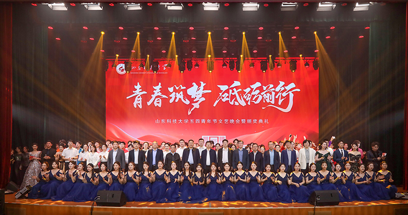 文艺晚会分为“信仰之名”“科技之光”“实践之路”“青春之美”四个篇章,以多彩歌舞、音乐剧、舞台剧、励志朗诵等节目展示了我校青年学子蓬勃向上的奋斗姿态。合唱《如愿》、歌舞《多彩科大人》,唱出信仰之力量,舞出青春之多彩;音乐剧《创新有我》,讲述科大青年不畏困难,勇攀创新高峰的拼搏故事;舞台剧《为爱出发》,呼吁青年投身实践,以小爱推动大爱;山科版《上春山》由各学院团委书记和同学们共同演绎,优美歌声唱出春日美景,动感舞蹈尽显青春绚烂;合唱朗诵《青春》,倡导吾辈青年以青春之风,助燃时代之火焰;乐声响起,演职人员纷纷走上舞台合唱《光荣啊,中国共青团》,为晚会画上完美的句号。