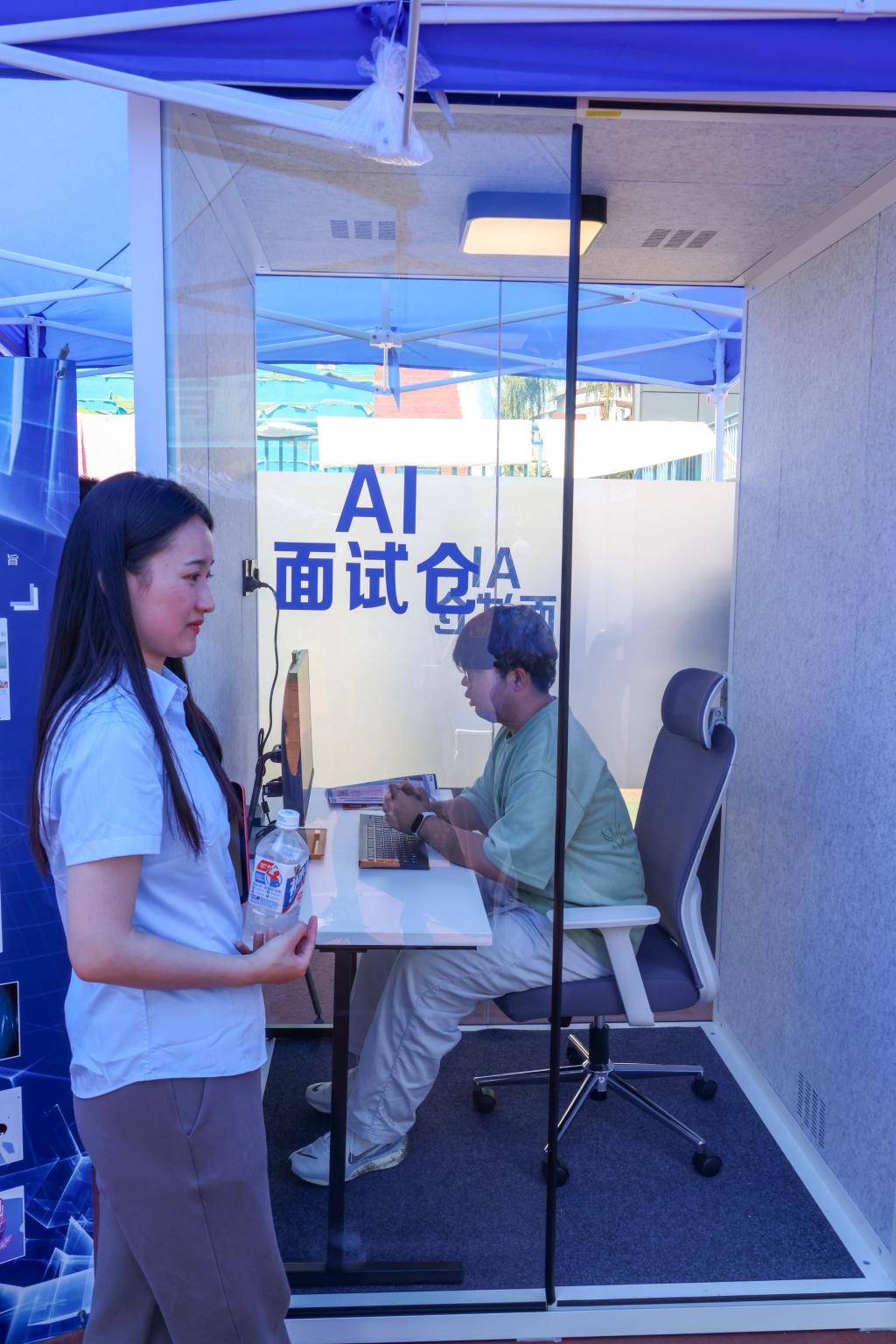 智慧就业设备展是本次活动现场的一个亮点。来自全省的6家专业的大学生就业创业赋能中心建设运营服务商,以数字信息化技术为核心,为各大高校提供全方位的就业创业服务。展区内有刷脸求职一体机、智能脑电测评仪、就业指导综合服务机、AI面试间等智慧就业设备,可以满足同学们模拟面试、生涯测评、就业信息搜索、生涯互动探索、AI简历制作、AI模拟面试等多元化需求,同时可以实现就业大数据展示管理,用“硬核科技”实现就业工作的一站式服务。
