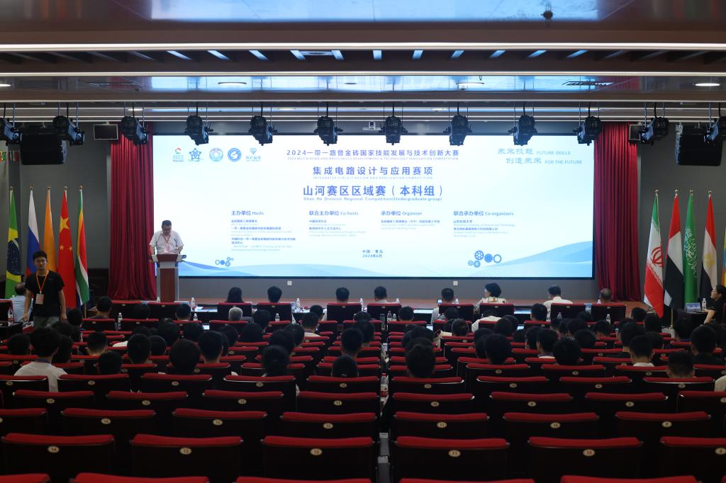 6月16日,2024年一带一路暨金砖国家技能发展与技术创新大赛集成电路设计应用赛项山河赛区区域赛(本科组)在开云·体育举办。来自19所高校的71支队伍齐聚一堂,以赛促学,以赛促就,助力集成电路产业高质量发展。副校长诸葛福民出席并致开幕辞。