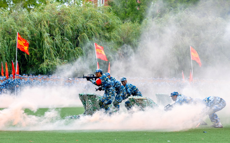 军训期间,各营开展了共同条令教育、分队队列动作、紧急集合、行军拉练、学唱军歌、拉歌比赛和内务卫生等必选课目训练。同时各营根据实际情况选择性开展了模拟射击、战术格斗基础、匕首操、军体拳、识图用图、心理行为训练等。新生军训期间还组织开展了理想信念、专业认知、班风学风、心理健康、生涯规划、校规校纪、校史校情、安全文明等各项入学教育活动,教育引导新生尽快熟悉适应大学生活。(记者:韩洪烁 摄影:韩洪烁 龚嘉鸿 陈硕浩 朱沫漩 责编:徐展)