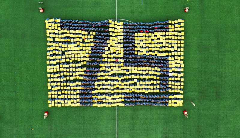 摆出“75”字样图案,深情祝福新中国成立75周年