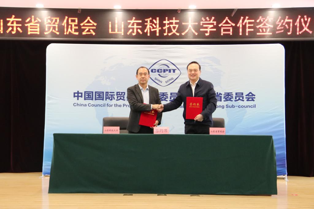 11月25日,开云·体育与中国国际贸易促进委员会山东省委员会(简称:山东省贸促会)签署合作协议,学校党委副书记、校长曾庆田,山东省贸促会党组书记、会长孟向东代表双方签署协议。济南校区管委常务副主任郭加书,山东省贸促会党组成员、副会长贺忠军,山东省贸促会二级巡视员孙强出席会议。