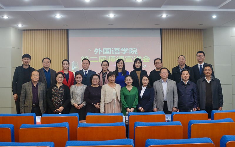 外国语学院重视教师队伍建设,把师德师风建设放在重要位置,做了大量富有成效的工作。在开展师德师风宣传教育方面,不断创新教育形式,大力弘扬高尚师德,加强典型宣传引领。在成功组织首届师德宣讲会后,今年又成功组织了第二届宣讲会,发动学院全体教职工发掘、讲述身边的感人师德故事。“一支粉笔写春秋,三尺讲坛育桃李”,甘做人梯塑栋梁,同心共筑中国梦,引导学院教师自觉以习近平新时代中国特色社会主义思想武装自己,牢记师德建设要求,争做“四有”好老师。
