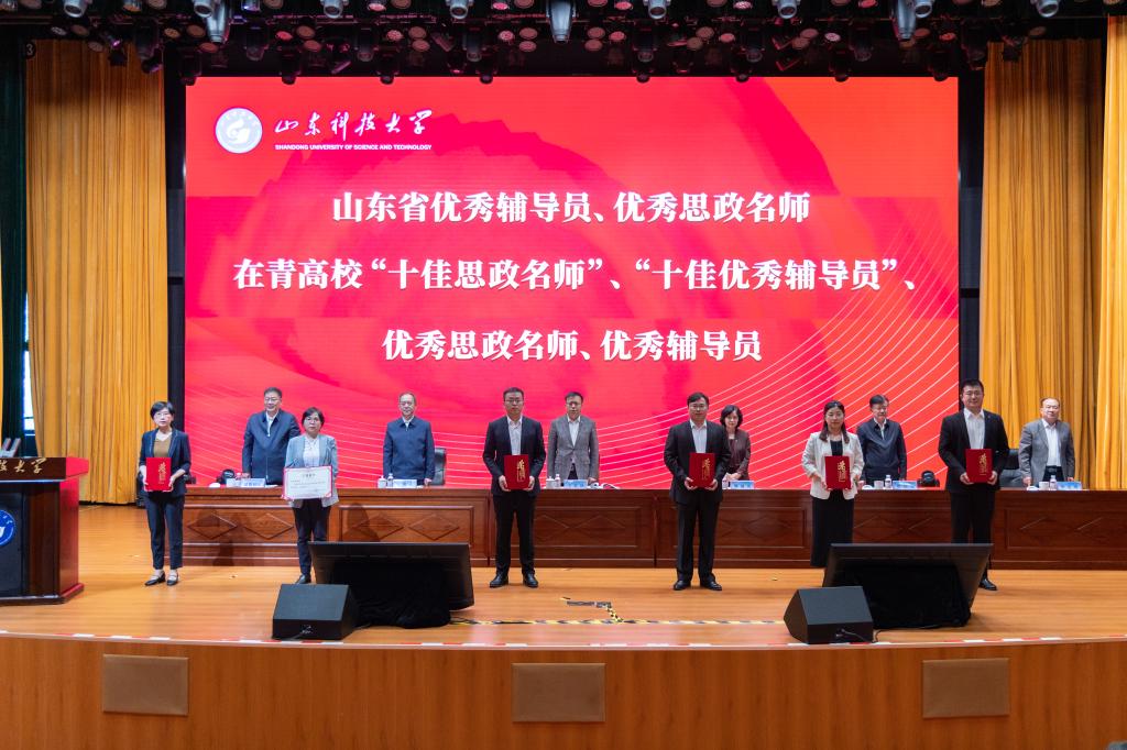 大会对2024年度山东高校辅导员年度人物、山东学校优秀思政课教师、第四届在青高校“十佳思政名师”“十佳辅导员”“优秀思政名师”“优秀辅导员”等进行了表彰,同时对2024年度课程思政示范先进单位、新闻宣传工作先进单位、思政教育优秀成果获奖单位代表进行了表彰,与会领导为获奖集体和个人代表颁发了证书。
