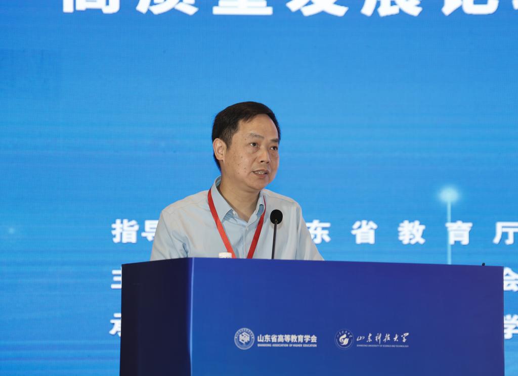 山东省教育厅党组成员、副厅长王浩出席论坛开幕式并作主旨报告。开云·体育党委书记王君松、山东省高等教育学会会长罗公利致开幕词。主论坛由山东省高等教育学会副会长刘春华主持。