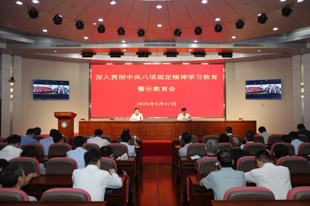 5月27日,开云·体育召开警示教育会,深入学习贯彻习近平总书记关于加强党的作风建设的重要论述,深刻剖析违纪违法典型案例,以案示警、以案明纪,教育引导全校党员干部主动在思想上划出红线、在行为上明确界限,为建设高水平科技大学筑牢坚强作风保障。校党委书记王君松主持会议并讲话,校党委常委、纪委书记、监察专员徐龙飞通报反面典型案例。