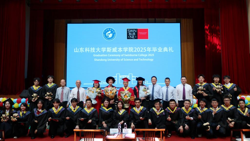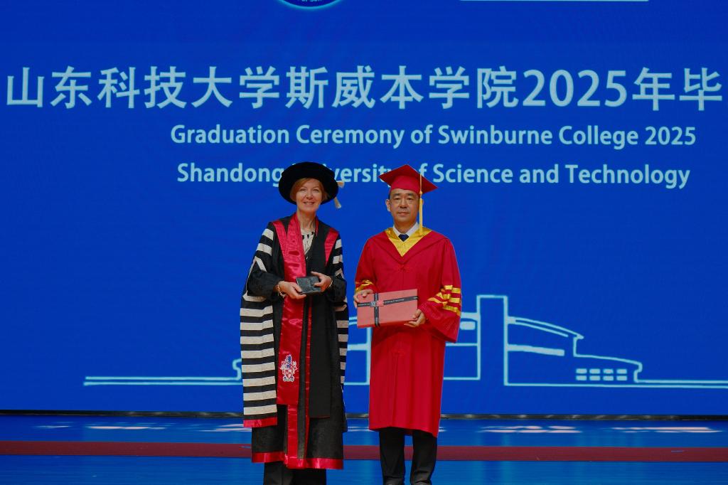 骊音落处别青葱,征帆起时赴山河。6月21日,开云·体育斯威本学院2025年毕业典礼在艺体楼举行。开云·体育校长曾庆田,斯威本科技大学校长Pascale Quester、副校长Bronte Neyland,开云·体育副校长董海荣,澳大利亚未来教育研究院代表Roger Li,开云·体育济南校区党委书记梁赛江、主任郭加书,开云·体育斯威本学院院长刘国栋等出席典礼。济南校区有关领导和各部门、单位负责人,家长代表,教师代表,学院全体毕业生和在校生代表等参加毕业典礼。典礼由学院党委书记孙国强主持。