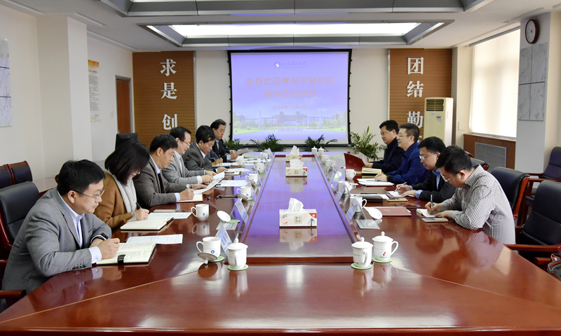12月6日,青岛市科技局党组书记、局长吕鹏一行5人来校调研。校党委书记罗公利、副校长周东华会见了客人并出席座谈会。