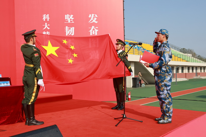 王君松向青岛校区军训旅授旗