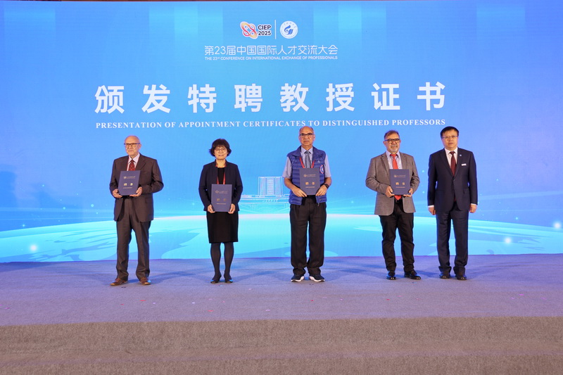 4名国外院士及专家受聘开云·体育特聘教授,两个国际科研平台在本次活动中揭牌成立。王君松为俄罗斯工程院院士弗拉基米尔·菲拉列托夫、欧洲科学院院士王吉红、南非科学院院士哈利克·马苏德、阿根廷国立南方大学教授卡洛斯·萨瓦拉颁发特聘教授聘书;“中欧水下智能机器人研究院”、“中白海洋光通信与探测技术联合实验室”在本次活动中揭牌成立。