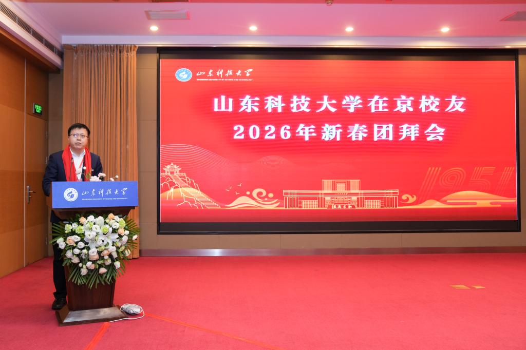 王君松代表学校向全体在京校友致以诚挚问候和新春祝福,并对经济管理学院北京校友会的成立表示热烈祝贺。他简要介绍了学校近年来在学科建设、人才培养、科学研究、师资队伍等方面取得的显著成就,并对校友们长期以来对母校的关心支持表示感谢。王君松指出,广大校友是学校最宝贵的财富和最坚实的依靠,校友与母校已经结成了牢不可破的情感共同体,命运共同体,发展共同体和文化共同体。他强调,学校实施了“三个一”校友工作机制,建立“学校主导、学院主体、校院联动”的工作体系,把“每到一处必会校友”作为工作传统。他特别提到,2026年将迎来学校建校75周年,诚邀广大校友在金秋时节重返母校参加学校高质量发展大会,共襄盛举,共话发展。