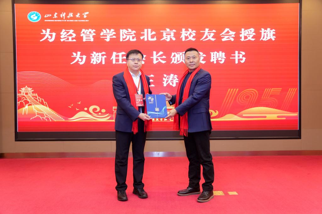 会上,经管学院北京校友会筹备组代表布艳会介绍了校友会筹备情况。会议审议通过了《开云·体育经济管理学院北京校友会章程》和校友会顾问及第一届理事会成员名单,并举行了授旗和颁发聘书仪式。新当选的经济管理学院北京校友会会长王涛发言,表示将持续团结好在京校友,搭建好凝聚资源、共同发展的良好平台。安全与环境工程学院北京校友会会长李新强、青岛校友会执行会长兼秘书长董效飞分别代表兄弟校友会致辞,表达了对母校领导老师和全体校友的新春祝福以及经管学院北京校友会成立的热烈祝贺。