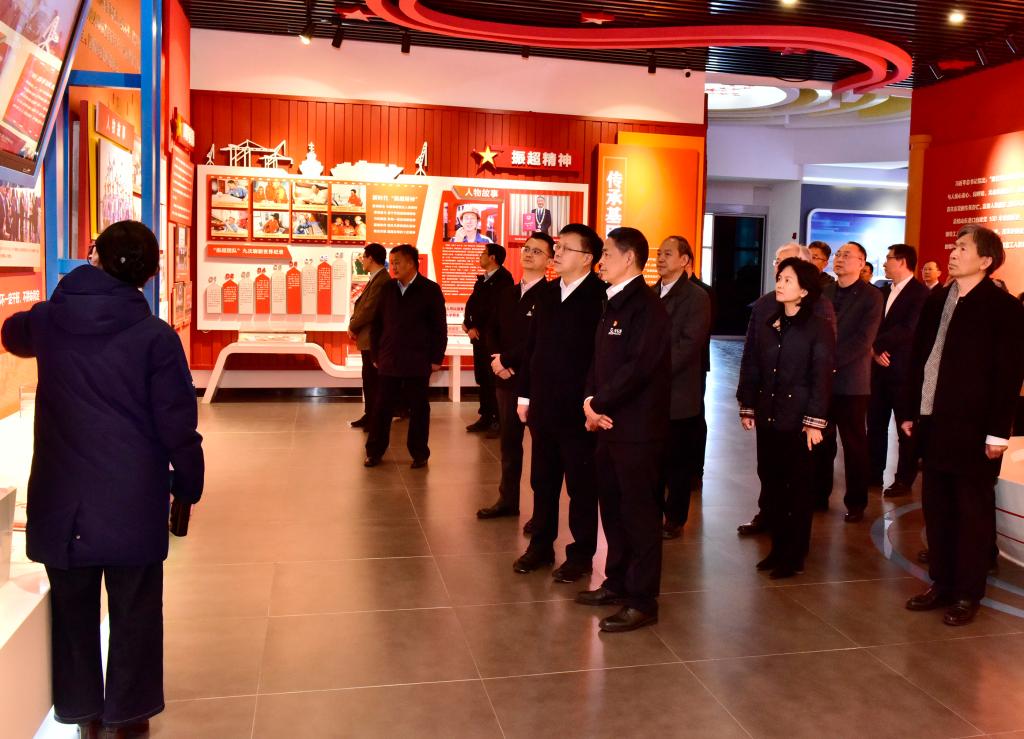 在青岛港港区,中心组一行详细听取港口发展规划和功能布局介绍,并重点走进全国先进基层党组织、“时代楷模”“连钢创新团队”展馆进行观摩学习。展馆以山东港口百年奋斗历程为主线,通过丰富的历史资料和实物展陈,生动再现了一代代港口人拼搏奉献的峥嵘岁月,集中展示了“改革先锋”“最美奋斗者”许振超、“时代楷模”山东港口集团青岛港“连钢创新团队”等先进典型的感人事迹和崇高精神。大家驻足观看,认真聆听讲解,接受了一次深刻的党性教育和精神洗礼。
