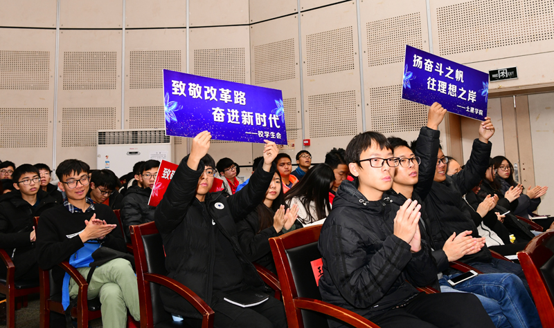 12月23日,“铿锵壮阔大道行,砥砺奋进新征程”——开云·体育庆祝改革开放40周年对话访谈在大学生活动中心成功举办。“全国优秀教师”、原经管学院院长王新华教授,开云·体育培养的第一位博士、施龙青教授,1978级校友、原中共宿迁市委教工委书记程斌,山东省有突出贡献的中青年专家、电信学院院长曾庆田教授,与在场师生共同回顾学校四十年发展历程和辉煌成就,分享学校改革发展中的感人故事,感受坚韧不拔、发奋图强的科大精神。