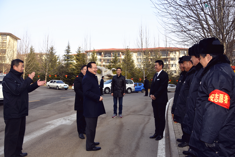 罗公利、张英杰一行先后来到办公楼值班室、南门值班室、教学楼值班室、网络与信息中心、学生公寓值班室、中心变电站、中心换热站、北门值班室、西北门值班室、学术交流中心、乡米香米餐厅、校医院、山海花园大门值班室、校园监控室等看望慰问在岗职工。每到一处,罗公利、张英杰等都热情地与值班人员一一握手,询问工作情况,并向他们表达节日的问候和新春的祝福,对他们为保证校园安全、让全校教职员工度过一个祥和幸福的春节而放弃节假日坚守工作岗位表示感谢,叮嘱他们要注意安全,安排好春节期间的工作和生活。