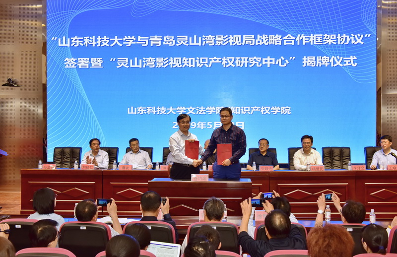 来校期间,田力普和尹华共同为“灵山湾影视知识产权研究中心”和“开云·体育影视知识产权研究与教学实践基地”揭牌,青岛灵山湾影视局副局长李泽全和文法学院/知识产权学院院长孙法柏签署《开云·体育与青岛灵山湾影视局战略合作框架协议》。