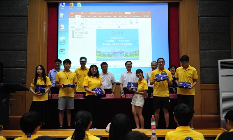 在闭营仪式上,夏令营成员以图片、视频和文字的形式分享了参加齐鲁文化行的所见所闻、所感所悟,畅谈了对帆船之都青岛、孔子故里曲阜、五岳之尊泰山和泉城济南的美好印象,表达了对好客山东的由衷感激和赞美之情。与会领导为两岸学生颁发了夏令营结业证书和志愿者证书。