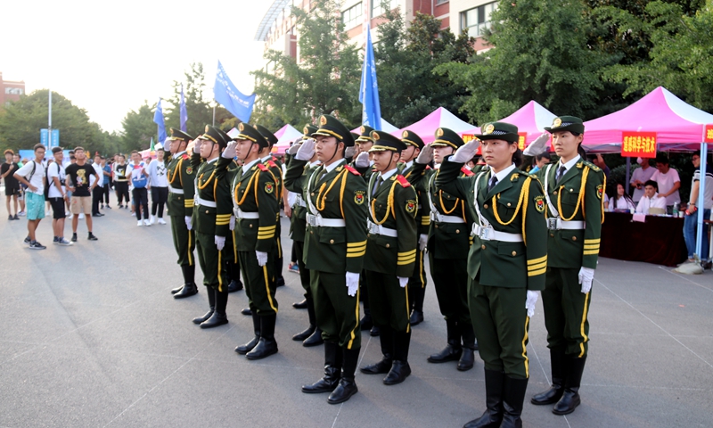 学校国旗护卫队欢迎新生