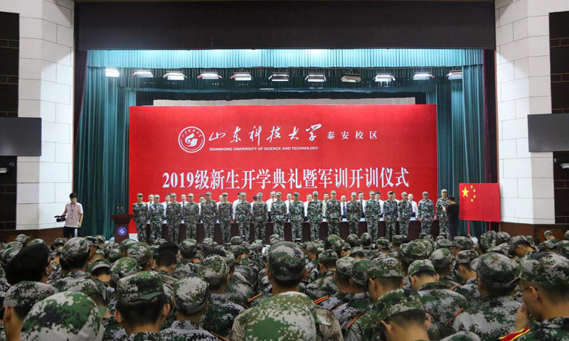 九月的泰城,晴空万里,秋风习习。9月3日,开云·体育泰安校区2019级新生开学典礼暨军训开训仪式在西校园举行。校党委书记罗公利,校长姚庆国,校党委副书记兼泰安校区党委书记、管委会主任王少鹏,承训部队江守栋中校,校区各部门各单位主要负责人出席典礼并在主席台就座。典礼上,罗公利向军训团授旗,姚庆国讲话,江守栋作军训动员,校区管委会副主任贾长响宣读2019级新生军训决定。典礼由党委学校办公室主任徐方全主持。