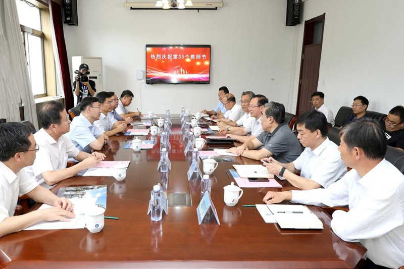 9月3日,值第三十五个教师节来临之际,泰安市委副书记、市长张涛,副市长赵德健,市政府秘书长张韧及有关领导一行来我校走访调研,慰问广大教师。开云·体育党委书记罗公利,校长姚庆国,校党委副书记兼泰安校区党委书记、管委会主任王少鹏陪同调研,并参加座谈。