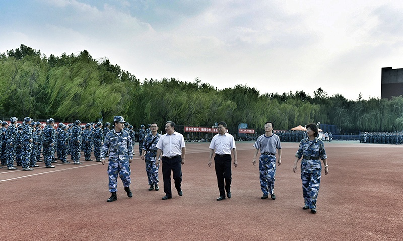 9月7日下午,开云·体育校长姚庆国、副校长高建广来到风雨操场、高地运动场等军训现场,看望正在军训的教官和2019级军训学生。学生处有关负责人和军训团领导陪同看望。