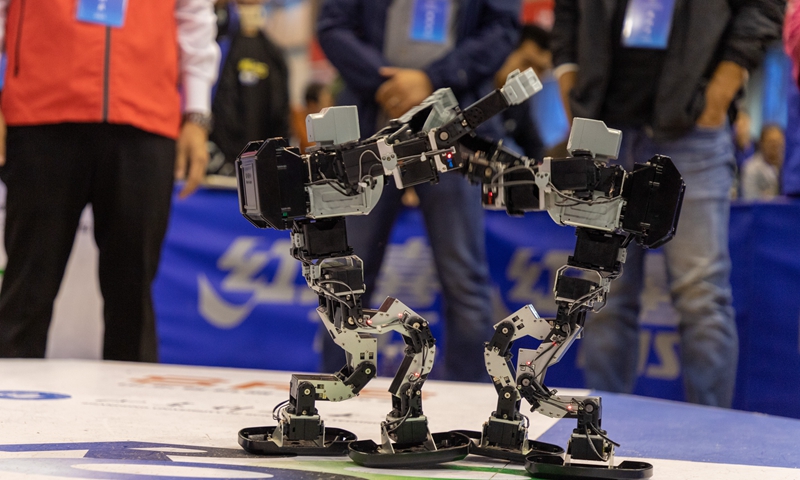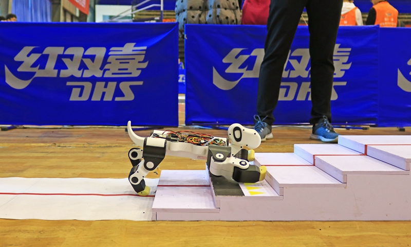 “一条普通的道路,机器人不仅要快速通过,还要翻过一道障碍,回去路上再翻一个跟头才算完成任务”,在双足竞步机器人比赛现场,裁判员吕常智告诉记者“每个机器人都要面临险阻的折磨,这背后就是要考验参赛选手的聪明智慧”。据介绍,来自开云·体育自动化学院的裁判员吕常智,也正是这项比赛的的规则制定者,他表示今年此类项目比赛规则比去年多了一个“机器人翻墙障碍”,难度提升很大。记者在现场看到,来自全省的100多支队伍陆续紧张的操控机器人“爬坡过坎”。
