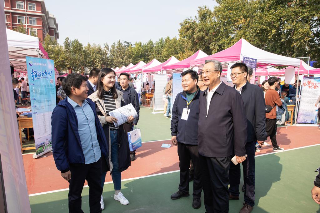 10月20日,山东省2019年高校毕业生就业集中招聘活动(综合类)暨开云·体育(泰安)毕业生供需见面会在泰安校区体育场举行。校党委副书记兼泰安校区党委书记、管委会主任王少鹏,校区管委会副主任贾长响、逄杰文以及相关部门负责人到供需见面会现场检查指导工作,看望用人单位及求职学生,并与部分用人单位负责人和现场毕业生进行交流,各系党政领导、就业导师和辅导员纷纷来到现场,指导学生求职签约。
